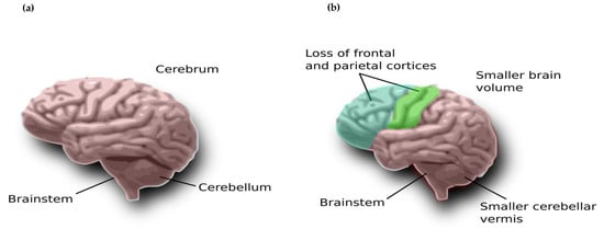 (a) Normal brain and (b) ADHD brain with smaller volume.