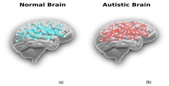 (a) Neurotypical brain and (b) ASD brain with denser neural connections.