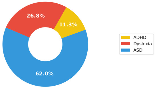 Pie chart representation of assistive tools used to aid in the learning of ADHD, dyslexia and ASD students.