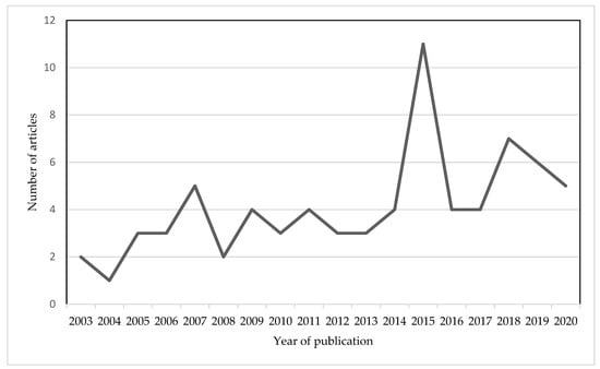 Most of the 75 included studies were conducted in Europe (n = 47) and Asia (n = 17), with 11 studies conducted in North America (n = 6), South America (n = 1), and Australia/Oceania (n = 4) published between 2000 and 2020 (see Figure 2). Among the studies included, surveys were the most common research method used to assess consumer acceptance of functional food. The data collection strategies and research methods varied, and included face-to-face questionnaires [,], computer-aided questionnaires [,,], questionnaire-based economic evaluation techniques such as experimental auctions [,,], conjoint analysis [,,], and choice experiments [,]. The types of functional foods investigated in the included studies were functional meats, functional beverages, functional dairy products, functional fruits, and functional snacks (e.g., cookies, yogurt, and cereals).