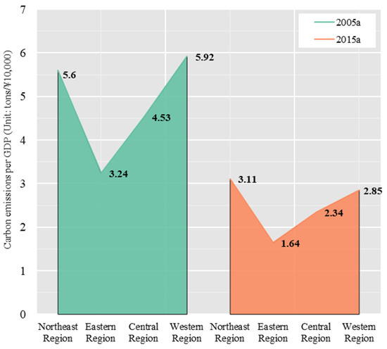 Carbon emissions per GDP in four major regions of China.