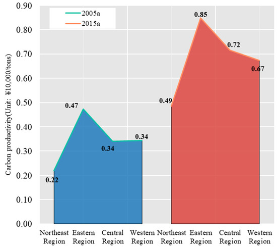 Carbon productivity in four major regions of China.