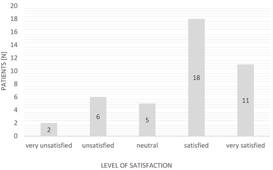 n = 29; 69.05%); eight people (19.05%) were dissatisfied. The remainder expressed no opinion. A detailed breakdown of the responses regarding the satisfaction of EMS patients is presented in