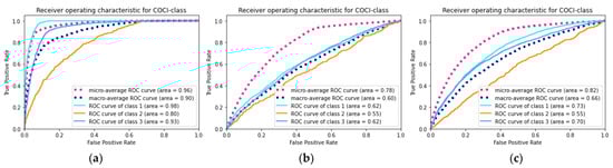 Table 3 presents the distributions of the COCI classes and the data instances. During the entire study period, 40.68% (12,905/31,724), 5.69% (1804/31,724), and 53.63% (17,015/31,724) of the data instances indicated low (COCI class = 1), moderate (COCI class = 2), and high COC levels (COCI class = 3), respectively.