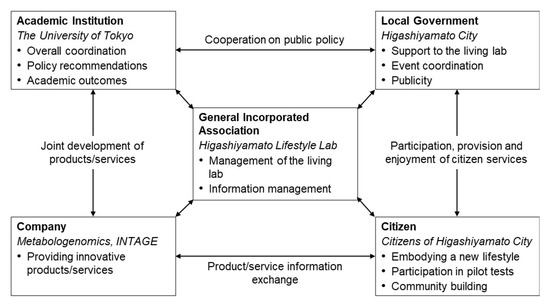 The target population was set as productive generation. Additionally, the city administration had been taking active measures to support child rearing, so we decided to first target the parents of preschool children who are highly interested in health. In designing the implementation process, we discussed among the stakeholders, as shown in Figure 1 and Figure 2. This being the inaugural year, the project was designed as a hypothesis-testing project, and the activities of the living laboratory were implemented.