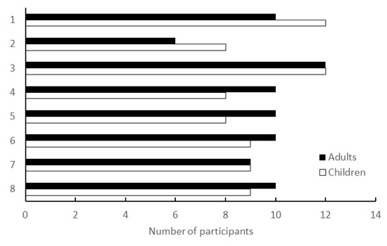 Workshops were conducted in a face-to-face format at the living lab. Based on previous research and past findings of the city, the workshops were designed to be held periodically—about once a month—and were held eight times, from June 2020 to March 2021. The number of participants in each session is shown in Figure 3.