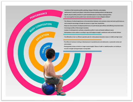 Contemporary researchers have contributed to research on improving health and sports performance through the development of new measurement methods and training strategies in young athletes [8,9]. The aim of this Special Issue of IJERPH entitled Growth, Somatic Maturation, and Their Impact on Physical Health and Sports Performance [10] is to propose and evaluate new training strategies aimed at improving the health status and physical performance of young athletes while highlighting the relationship between somatic maturation, anthropometry features, education, and health-related factors via longitudinal and cross-sectional studies.