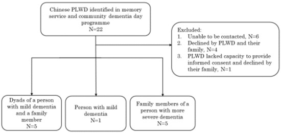 We used a convenience sampling strategy to recruit potential participants from a memory service of a large teaching hospital and a community dementia day programme in Auckland, New Zealand. We identified 22 Chinese people with a diagnosis of dementia in these two services. They and/or their families were initially approached by SC, an old age psychiatrist at the Counties Manukau District Health Board memory service, or by the clinical coordinator at the community dementia day programme. We kept our eligibility criteria broad to capture a wide range of perspectives from PLWD and/or their families. Participation was voluntary and written consent was gained from all study participants. The only exclusion criterion for PLWD was when a person lacked capacity to consent to participate in the study. A $50 voucher was provided to each participant at the completion of the semi-structured interview. Ethics approval was gained from the Health and Disability Ethics Committee (reference number 17/CEN/126/AM01).