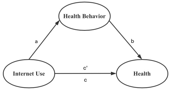 Existing studies on the mechanisms underlying the association between Internet use and health are unclear. Health behavior is the foundation of population health. Therefore, for further exploration, we selected health behavior as the mediating variable to verify its mediating mechanism. Based on previous research, this study referred to the basic ideas of the analysis by Baron and Kenny [54] and adopted a stepwise regression method to verify the mediation. We also calculated the path coefficients. Figure 2 shows the mediation pathway. Table 9 provides the estimated results.