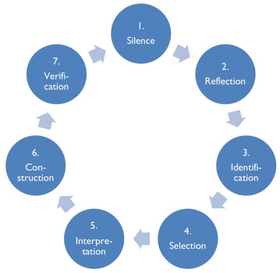 | Step 2. Silence (before entering a dialogue). | The researchers reflected upon their preconceived ideas and consciously put them aside as much as possible. |