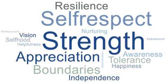 | Self-Respect | Respect themselves. Enjoy their own company. Proud of themselves. | “I really enjoy my own company and my soul is peaceful most of the time. I have learned how important it is to take good care of myself. I’m really proud of myself” (Ursula). |