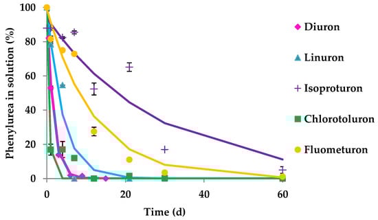 - Hussain, S.; Arshad, M.; Springael, D.; Sørensen, S.R.; Bending, G.; Devers-Lamrani, M.; Maqbool, Z.; Martin-Laurent, F. Abiotic and Biotic Processes Governing the Fate of Phenylurea Herbicides in Soils: A Review. Crit. Rev. Environ. Sci. Technol. 2015, 45, 1947–1998. [Google Scholar] [CrossRef]
