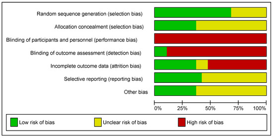 - Sterne, J.A.C.; Savović, J.; Page, M.J.; Elbers, R.G.; Blencowe, N.S.; Boutron, I.; Cates, C.J.; Cheng, H.Y.; Corbett, M.S.; Eldridge, S.M.; et al. RoB 2: A revised tool for assessing risk of bias in randomised trials. BMJ 2019, 366, l4898. [Google Scholar] [CrossRef] [Green Version]