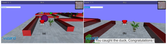 - Motor + Cognitive tasks: These tasks require motor execution, memory, and planning capability. Tasks of IE modules 6–7 focus both on motor and cognition. Tasks of IE module-6 require the subject to remember a particular sequence of buttons instructed before task initialization and to press the joystick buttons in the exact sequence to remove the obstacles and move forward, reaching the target. Pressing an incorrect key was recorded as an error. Three different maze tracks were designed in IE module 7 tasks, for which the subject has to decide the correct path by viewing the top view of the 3D world to reach the target.