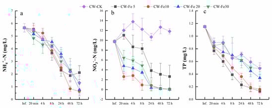 4.1. Influence of Fe2+ Addition on Nitrogen Removal in CWs