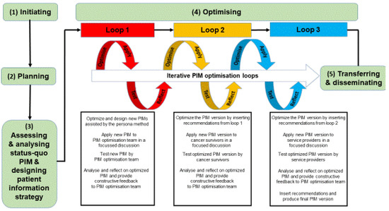 Our PIM optimization process contained five phases: (1) initiating, (2) planning, (3) assessing the status-quo, (4) optimizing, and (5) transferring and disseminating (Figure 1).