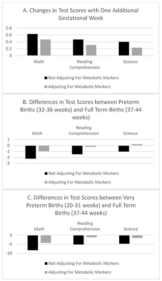 Associations between Gestational Age Measures and School Test Scores Adjusting for Metabolic Markers.