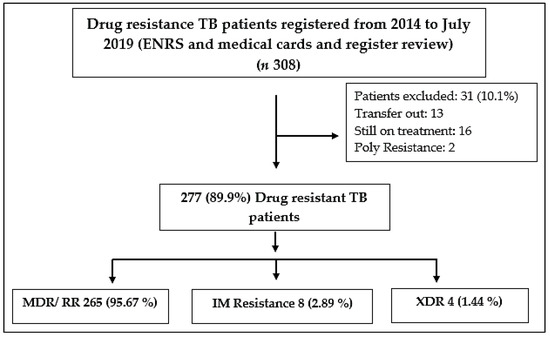 - Alemu, A.; Bitew, Z.W.; Worku, T. Poor treatment outcome and its predictors among drug-resistant tuberculosis patients in Ethiopia: A systematic review and meta-analysis. Int. J. Infect. Dis. 2020, 98, 420–439. [Google Scholar] [CrossRef]