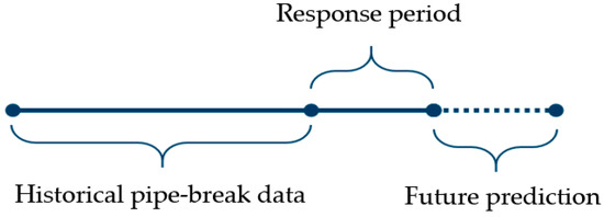 The success of the rehabilitation strategy is greatly dependent on the accuracy of the pipe failure forecasting model in use. Thus, a number of physically and statistically based water main prediction models have been developed in the last 40 years. The review of Kleiner and Rajani [4] presents an overview of the statistical models developed prior to 2001. Since the review of Kleiner and Rajani [4], the knowledge about machine learning techniques has become popularized in the water sector and has been adopted in pipe failure forecasting modelling. These modelling techniques include, but are not limited to, genetic algorithms [5], artificial neural networks [6], Random Forest analysis [7], boosted decision trees [8], fuzzy logic, support vector machines, etc. Machine learning and statistical methods have become an invaluable tool for forecasting [9] and lifetime analysis [10]. The applications include financial markets [11], modelling of dynamical systems [12], and predictive maintenance [13]. Predicting the remaining service life of a physical component provides a useful decision support regarding whether to rehabilitate or to replace the component. This has an obvious economic benefit while also ensuring the safety and productivity of the system. Powered by increased data collection and the integration of physical and digital systems in industrial applications, data-driven methods are valuable, for instance, in production facilities, electricity grids, and offshore activities [13]. Recent trends show that the use of data-driven models is becoming more common for water resource management [14].