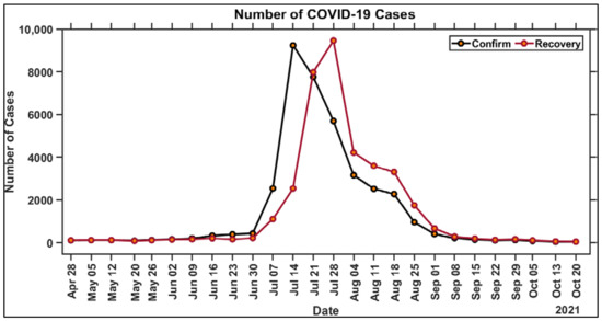 By 9 April 2020, the pandemic had spread to all provinces in Indonesia, and on 24 June 2020, over 500 cases were confirmed in almost every region [7]. According to the information posted on Lawan’s website, [8] the Surabaya city area recorded 64,547 confirmed cases of COVID-19 on 26 August 2021.