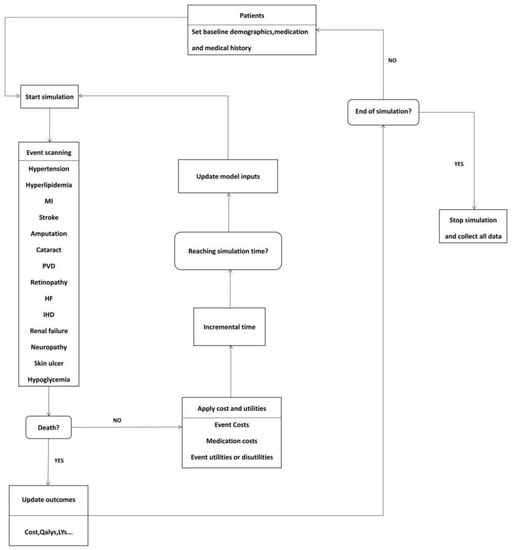 - Palmer, A.J.; Roze, S.; Valentine, W.J.; Minshall, M.E.; Foos, V.; Lurati, F.M.; Lammert, M.; Spinas, G.A. The CORE Diabetes Model: Projecting long-term clinical outcomes, costs and cost-effectiveness of interventions in diabetes mellitus (types 1 and 2) to support clinical and reimbursement decision-making. Curr. Med. Res. Opin. 2004, 20 (Suppl. 1), S5–S26. [Google Scholar] [CrossRef]