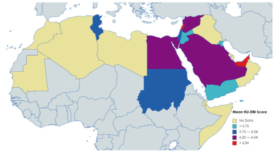 3.6. HU-DBI Scores in the Arab Region 2000–2020