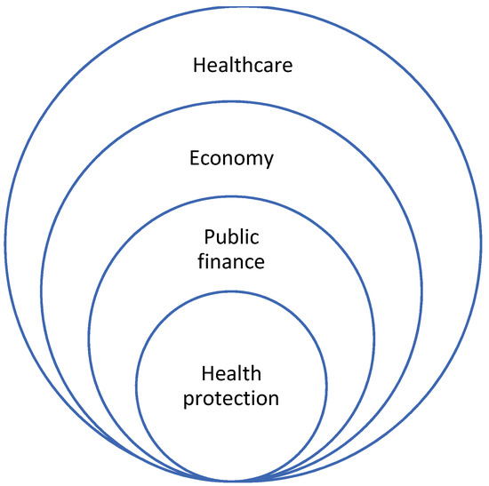 It should be emphasised that the operation of hospitals and healthcare providers in general, which translates into the quality and availability of health services, depends on all of the determinants related to this operation. In addition to the organisation, management and financing of healthcare itself, one should have knowledge based on indicators on the state of the economy, public finances and the ways of making decisions, by each member of the society. Thus, indicators related to these areas should be constructed and used. Their impact on health protection is shown in Figure 1 below.