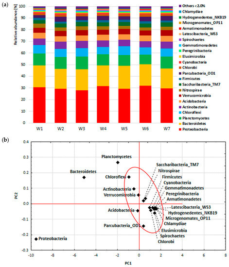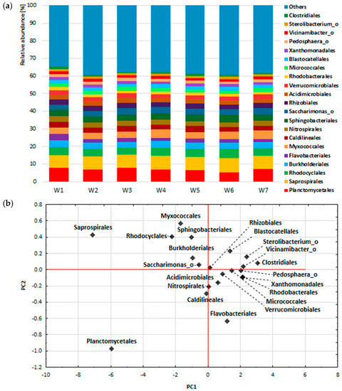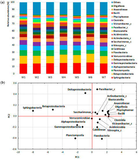 The amplification reaction of the bacterial 16SrRNA gene fragment (V3–V4) was performed by the DNA Sequencing and Oligonucleotide Synthesis Laboratory, Institute of Biochemistry and Biophysics, PAS, Warsaw, Poland. Analysis of the obtained data on the composition of the bacterial biocenosis of the activated sludge was performed using the EzBioCloud service https://www.ezbiocloud.net/, accessed on 31 October 2020) and the 16S-based MTP Microbiome Taxonomic Profiling tool [44].