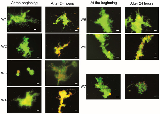 Furthermore, the results of LIVE/DEAD fluorescence staining showed that the addition of leachate (raw and after treatment) did not significantly affect the cell membranes of activated sludge bacteria. Even a slight improvement in the condition of the sludge was observed after mixing with leachate from Legnica.