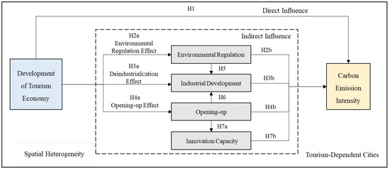 - Tourism Economy → Environmental Regulation → Industrial Development → Carbon Emission Intensity
