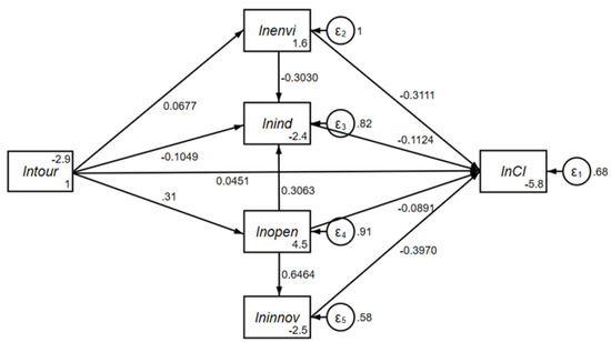 | Dual Intermediary pathways | lntour → lnenvi → lnind → lnCI | + | ◯ | - | - |