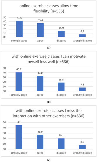 - Füzéki, E.; Schröder, J.; Groneberg, D.A.; Banzer, W. Online Exercise Classes during the COVID-19 Related Lockdown in Germany: Use and Attitudes. Sustainability 2021, 13, 7677. [Google Scholar] [CrossRef]