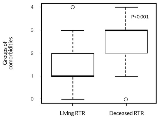 The association of patient survival with the categories of comorbidities (Mann–Whitney test).