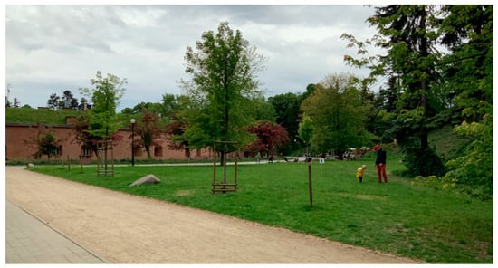 The non-physical elements affecting the perception of the park’s quality include, among other things, the distinctiveness of the place. For residents, a positive attitude (i.e., place satisfaction, identification, attachment) and recommendation (i.e., positive word-of-mouth) increase the interest in the park. Of great importance is the internal perception of accessibility, sometimes having a stronger influence on park visits than the real obstacles in the built environment [52]. Another significant element that impacts the willingness to visit a public space by people with a disability is that they prefer to be perceived as all other people because the way they treated is as important to them as physical access [46]. The most difficult but the most crucial quality for a place to achieve is sociability. A successful place is a favourite spot for people to meet friends, greet their neighbours and feel comfortable interacting with strangers [45]. The possibility of inviting friends and relatives influences the attachment to a place and hence, visits [53].