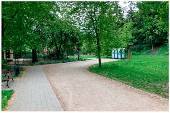 - Błaszczyk, M.; Suchocka, M.; Wojnowska-Heciak, M.; Muszyńska, M. Quality of Urban Parks in the Perception of City Residents with Mobility Difficulties. PeerJ 2020, 8, 10570. [Google Scholar] [CrossRef] [PubMed]