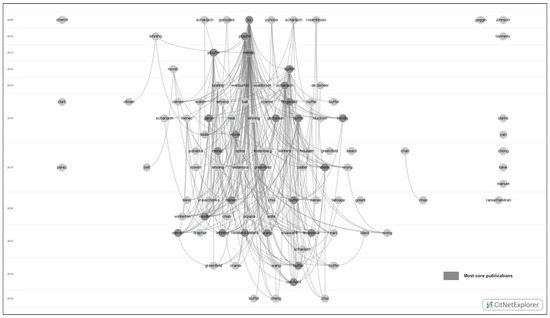 Two types of commonly used scientometric software, namely, VOSviewer (Centre for Science and Technology Studies, Leiden University, Rapenburg, The Netherlands) and CiteNetExplorer (Centre for Science and Technology Studies, Leiden University, Rapenburg, The Netherlands), were used in this study. Both types of software can construct citation networks and visualise them. With the network, these two types of software can realise more advanced quantitative analyses to map the science development of a research area. The network produced by VOSviewer is undirected, while the network given by CiteNetExplorer has a temporal direction. They also have different analysis functions. Thus, they supplemented each other in this study.
