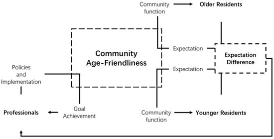 At present, age-friendly community policies are still being developed slowly because the hegemonic actors of community spaces are reluctant to put age-friendliness factors in their spatial representations [130,131]. One of the main reasons for this reluctance can be attributed to institutional ageism in policymaking [132]. Using the production of space, Buffel and Phillipson analysed the barriers confronted by age-friendly community policy development [9]. The most fundamental barrier is the intergenerational inequality to determine urban development. Affected by neoliberalism, urban development mainly serves capital accumulation and economic development. Thus, community spaces mainly serve the younger working population and the participants of urban economic activities. However, the younger generation usually has conflicts with older residents over spatial expectations and spatial practices [133]. This institutional ageism in policy development reflects the wide societal ageism that discriminates older people because of the stereotype of an economic burden [134].