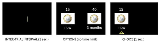 - Sellitto, M.; Di Pellegrino, G. The neuroscience of human intertemporal choice: State-of-the-art. In Neuroeconomics: Theory, Applications, and Perspectives, Proceedings of the 1 Officina di Neuroeconomia; Egea: Milano, Italy, 2018. [Google Scholar]