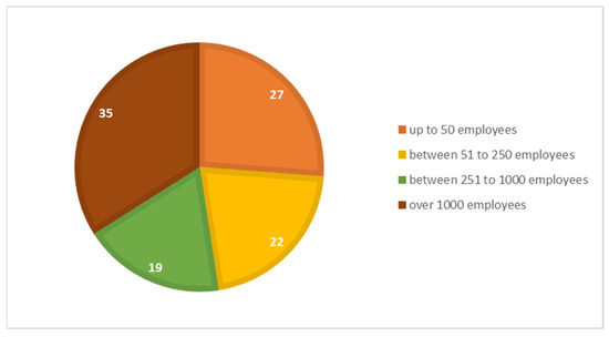 In terms of the company size, the surveyed organizations have a wide variation of the number of employees. As seen in Figure 2, the size of responded firms is diversified and balanced. This variety of the company proportions makes the interpretation of the results more relevant for the overall industry. The heterogeneity of the size of companies reveals a perceived average view on the actions needed and undertaken to reduce the carbon footprint. Furthermore, a comparative analysis of the answers will be performed depending on the size of the companies, divided into large and small companies. This comparative analysis will help us see the similarities and differences between them as there is a significant difference in the technology capabilities and in the accumulated know-how that they can employ during their efforts.