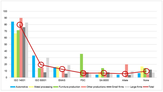 Environmental standards implemented by manufacturing firms (percentage of answers).