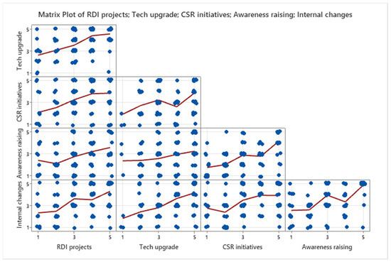 With a Cronbach’s alpha coefficient of 0.7628, reflecting the internal consistency of the data, we can affirm that the possible measures support and complement each other. This is, however, not true for the four determinant topics selected from the literature (Cronbach’s alpha coefficient of 0.0507), which means that the social and economic expectations towards the companies are clear for them, but what they must actually do and how they can be supported is still a “fuzzy picture” for the private sector. It is possible that this confusion is even greater in the public sector in order to help the companies. Still, considering that there are possible punctual connections, we intend to perform another comparative investigation through statistical testing.