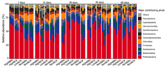 3.3. Effects of CP Fumigation and Biochar Addition on the Structural Composition of Rhizobacterial Communities