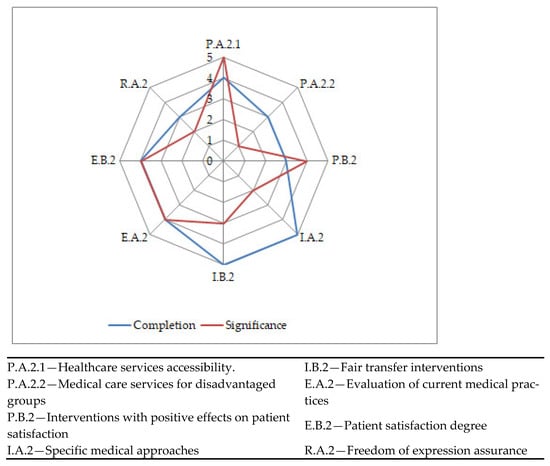 | P.B. Patient-lefted care interventions design | P.B.1. Quality assurance processes design | P.B.2. Interventions with positive effects on patient satisfaction | P.B.3. Quality of patient-lefted medical interventions assurance | P.B.4. Environmental criteria for the selection of materials used in interventions | P.B.5. Effective interventions implementation | P.B.6. Patient self-care design and self-management | P.B.7. Content of the interventions adapted to the community | |