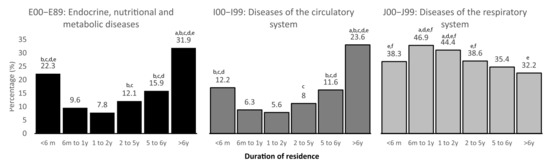 3.5. Diagnosis by ICD-10 and Association with Duration of Residence