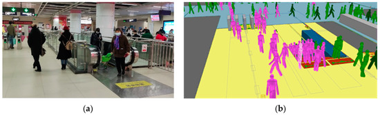 Figure 10 and Figure 11 give comparisons of the observed and simulated pedestrian distribution in part of the crowded areas at the station concourse and platform to validate the PFA model. Observations of pedestrian flow were made during the same period as the field measurement results.