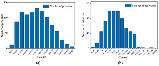 Firstly, the walking speed of pedestrians in the subway station should be given. This speed data is obtained in reference to the videos, according to the method given in [13]. The mean speed of pedestrians is set to 1.25 m/s with a variance of 0.2, and it is considered to be following a normal distribution.