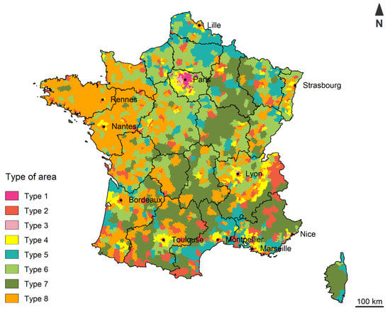 The 8 types of areas in Metropolitan France.