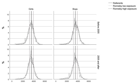 | Variables/Categories | Blekinge Referents | Ronneby Low Exposure | Ronneby High Exposure | |||