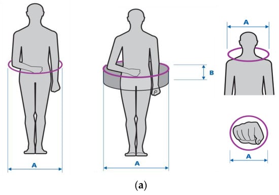 It should be noted that the dimensional allowances discussed in this publication have a different meaning as they increase the external dimensions of PPE users. In other words, they represent the values that should be added to anthropometric measures to reflect the air spaces between the body and the PPE plus the total dimensions of the PPE itself. These allowances are crucial for the safety of limited accessibility entrances/exits and the safety of work in confined and enclosed spaces. The cross-sections of such spaces are usually circular (e.g., sewer and storm drain manholes) or rectangular (e.g., ventilation ducts). Thus, the geometric solids approximating those spaces are cylinders and cuboids, respectively. The need to classify confined spaces into those two categories was already indicated in the Atlas of Human Measures [] from 2001. Figure 1 presents geometric figures modeling the actual shapes of confined spaces entered by workers (whether by the entire human body or in part) during occupational activity.