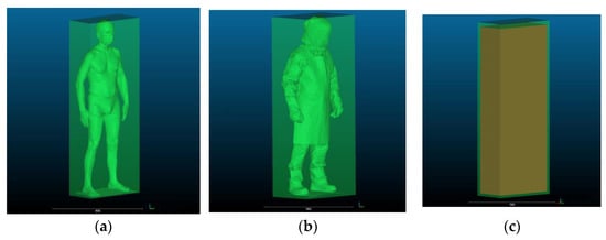 - volumes of the cuboids circumscribing the silhouette of the subject wearing underwear and PPE (VQ_u,VQ_PPE);